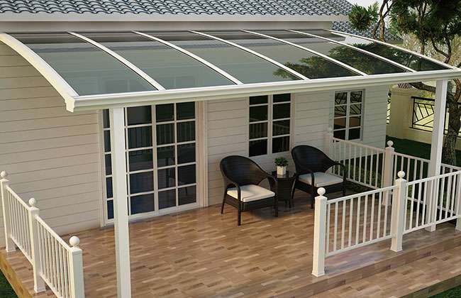上海郝荣智能建筑有限公司雨棚(A5款窗棚、露台棚)系列产品是高强度铝合金和聚碳酸酯板(耐力板)的结合。主体结构全部采用高品质、高强度铝合金材料精加工而成,具备的氧化保护能力,不生锈,表面特殊的工艺处理,大大提高了雨棚的使用寿命。顶棚耐力板的运用,能遮挡阳光中的有害紫外线对地板、墙壁、窗帘等损害;同时阻挡夏日毒辣的太阳,可以控制室内温度的上升,冷气效果也大幅度提高,从而达到节约能源的作用。